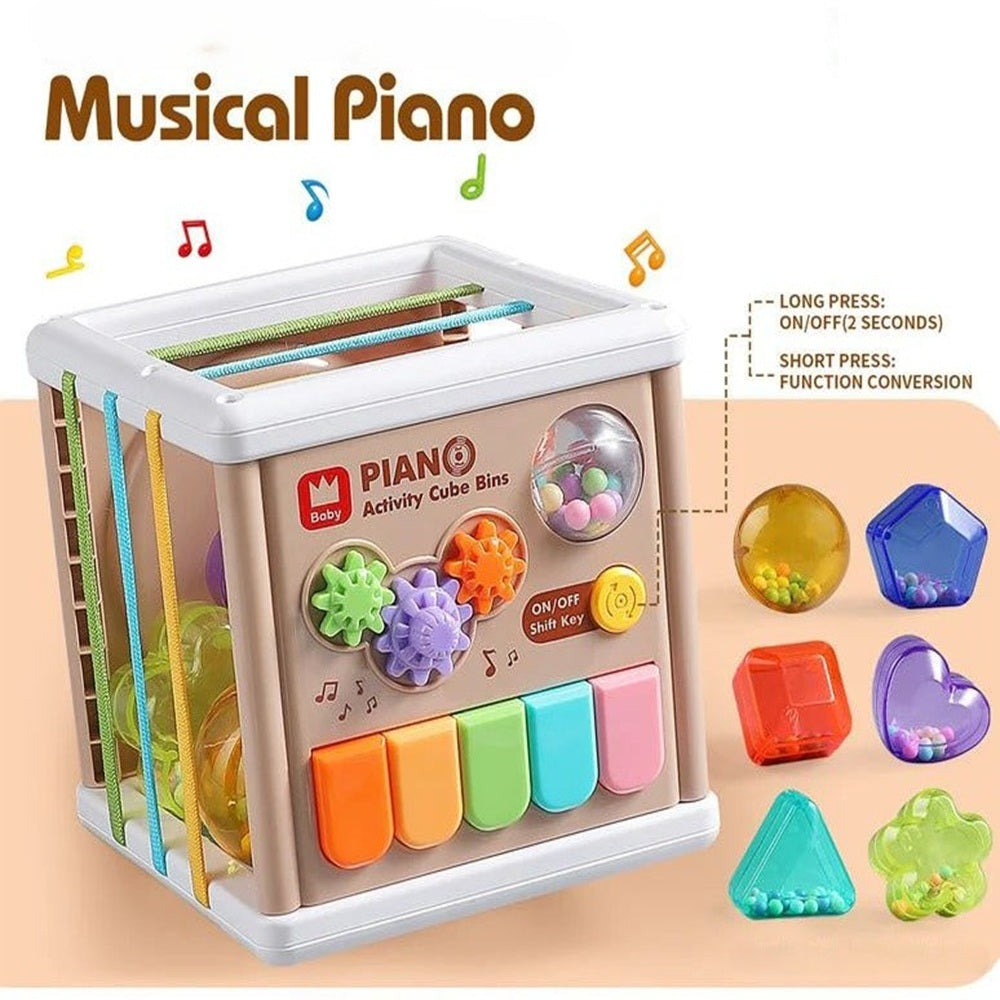 Ce jouet éducatif 5-en-1 regroupe plusieurs activités passionnantes dans un seul cube : un piano coloré aux touches faciles à presser, des puzzles amusants et des défis de formes captivants. Chaque face propose une nouvelle expérience qui stimule la motricité fine, la réflexion et la créativité.