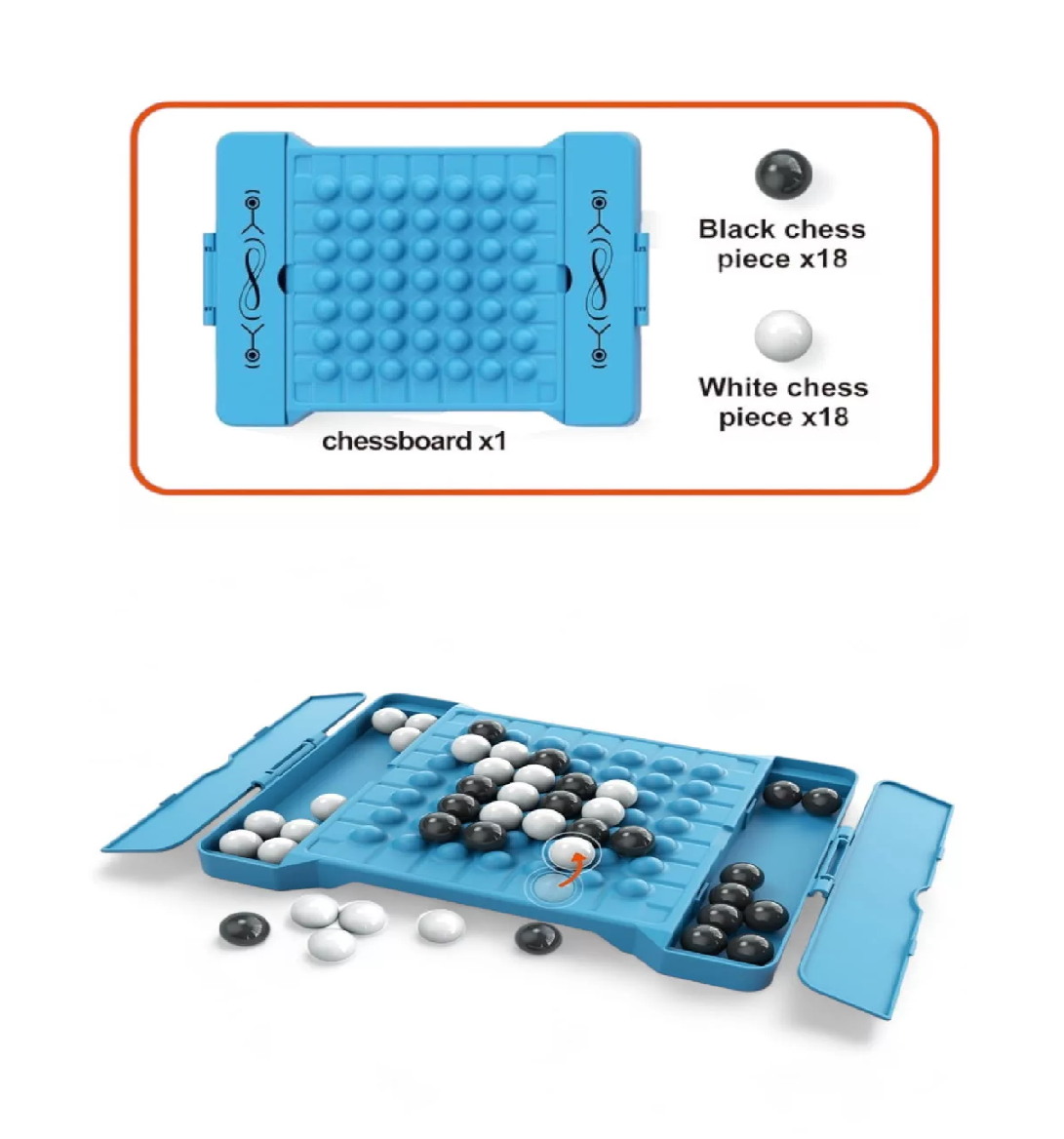 Le coffret comprend un échiquier pratique avec des compartiments de rangement de chaque côté. Il contient 18 pièces noires et 18 pièces blanches, faciles à manipuler et parfaites pour les petites mains.