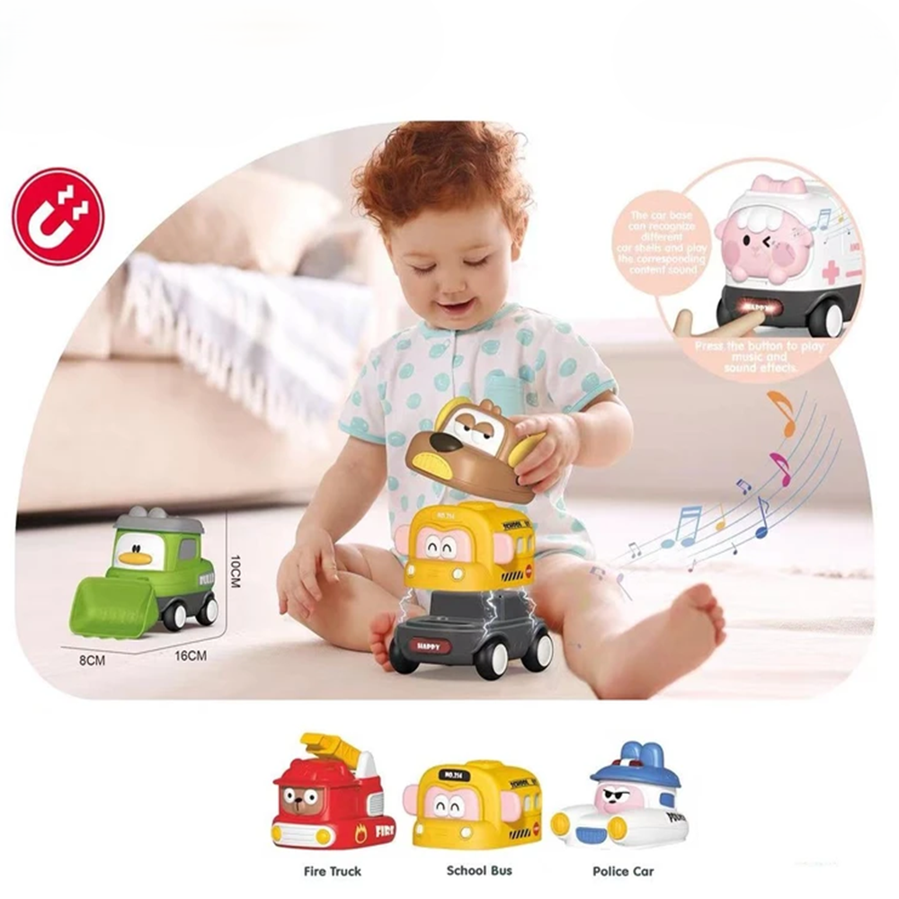 Découvrez des voitures musicales qui s’assemblent toutes seules ! Ces véhicules magnétiques amusants captiveront immédiatement les enfants grâce à leur design coloré, leurs sons entraînants et leurs mouvements dynamiques. Il suffit d’appuyer sur la voiture pour déclencher des mélodies et effets sonores, offrant un jeu interactif et stimulant.
