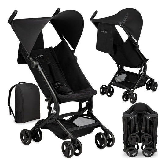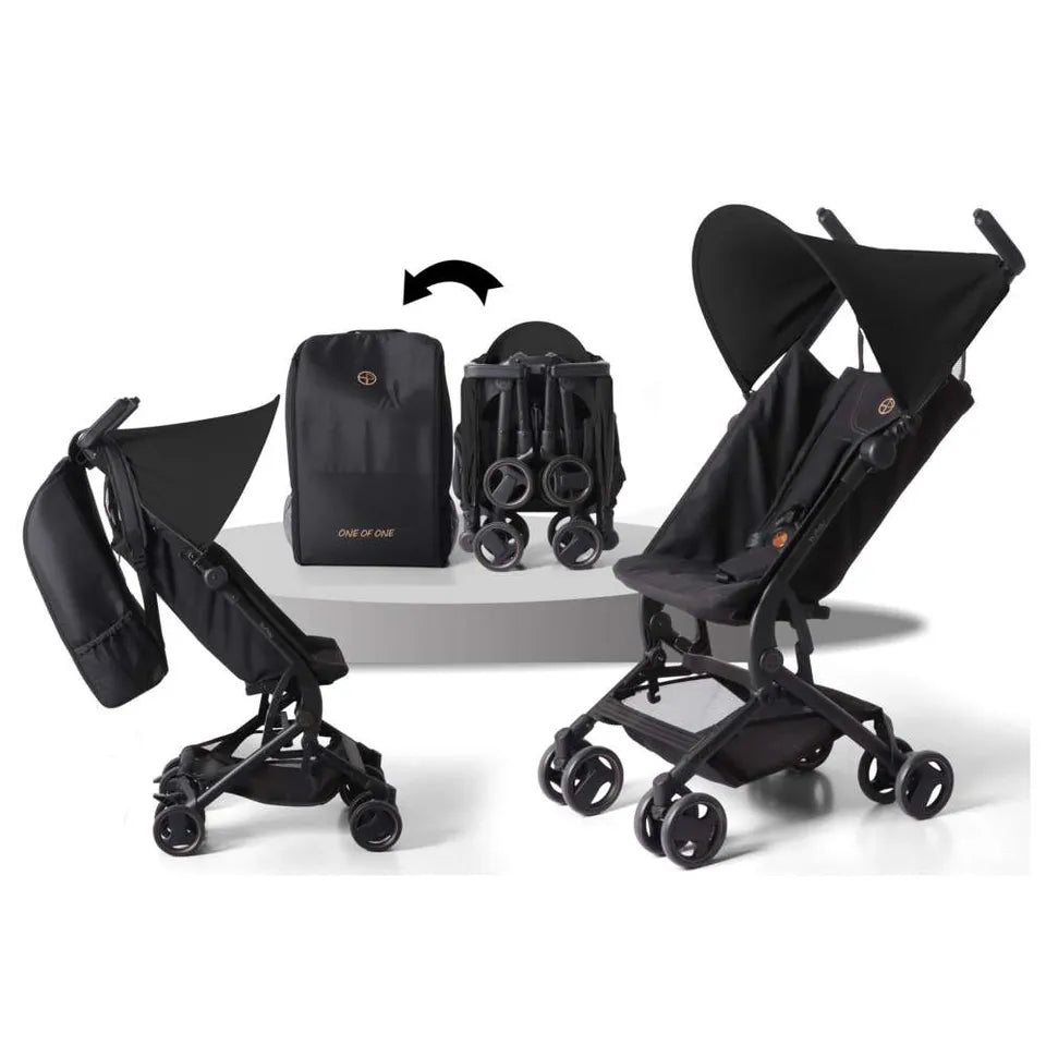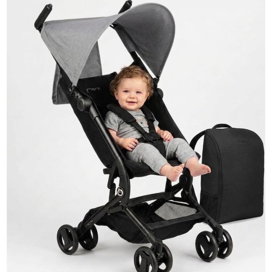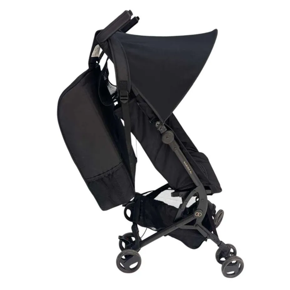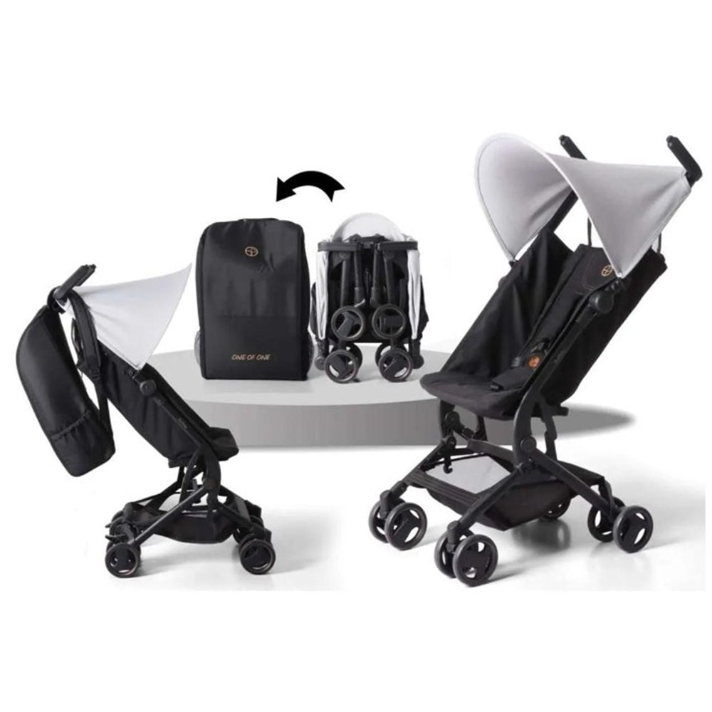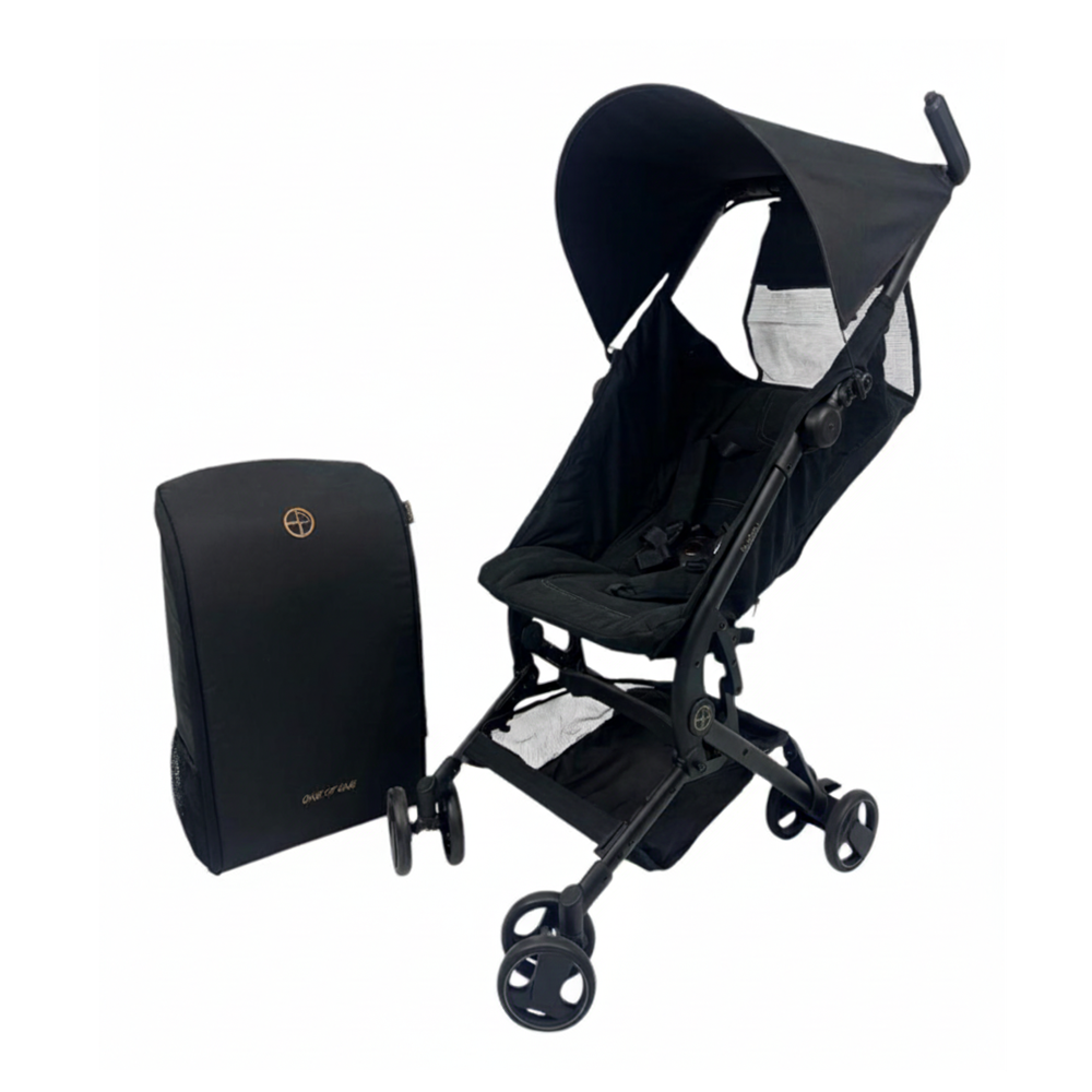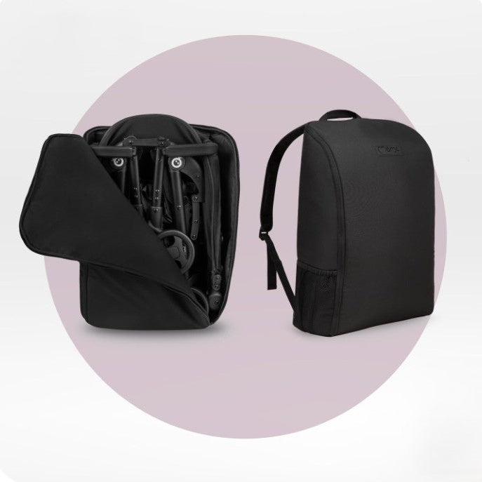 Elle est accompagnée d’un sac à dos élégant, équipé de bretelles rembourrées et ajustables, permettant de transporter facilement la poussette une fois pliée. Ce système rend l’ensemble léger et très simple à déplacer.